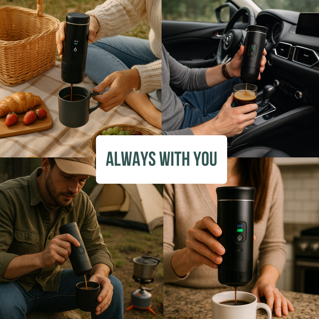 Make real espresso wherever the day takes you. With a 7500 mAh battery, OpenAir Mini Brew heats water to 198 °F in minutes and lets you brew up to 5 cups on a single charge — no outlets, no limits, just coffee when you want it.